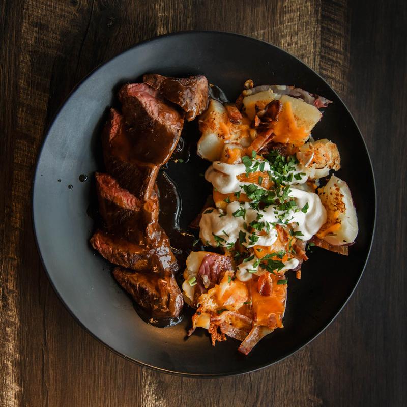 Our menu offers twists on classic Western fare and comfort food. Begin with a crafted cocktail from our full bar and move on to starters like our favorite fried goat cheese discs. Then indulge in dishes such as the Mile-High Pie; a bowl-shaped pie crust filled with a coq au vin chicken mixture or the beef version -- a crock of beef Burgandy topped with mashed potatoes. For dinner enjoy a Rancher’s Iron, a flat iron steak crusted in peppercorns and cooked to perfection.